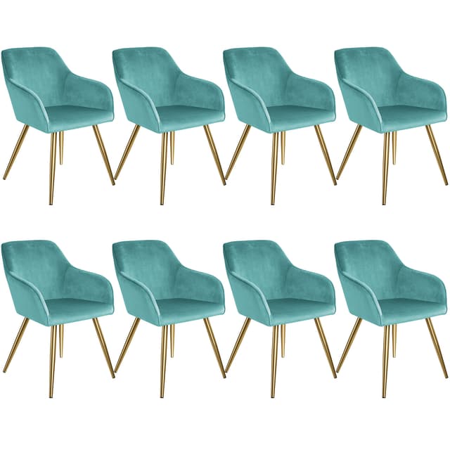 • tectake Karmstol Marilyn i sammetslook, guldben 8-delarsset
