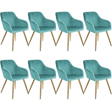 tectake Karmstol Marilyn i sammetslook, guldben 8-delarsset