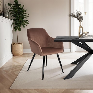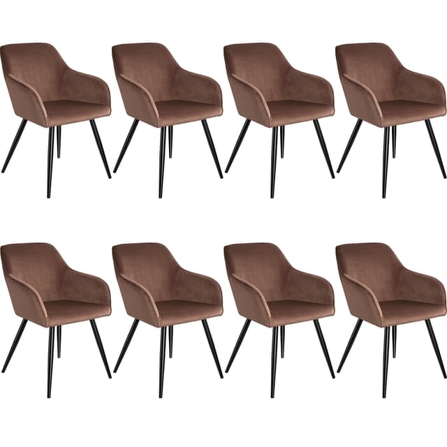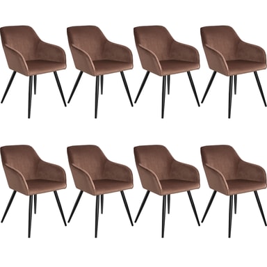 Denna eleganta stoppade stol i sammetsoptik från tectake ger ditt hem en ädel touch. Färgen på sitsen drar blickarna till sig och kan med fördel kombineras med en rad olika inredningsstilar. Stativet i robust stål ger utmärkt stabilitet och hög belastningskapacitet, medan plastskydden på de fyra fötterna har en dämpande effekt och förhindrar repor. Förutom det snygga utförandet och de förstklassiga materialegenskaperna, ger denna smakfullt utformade stoppade stol med bekväma armstöd dessutom hög komfort.