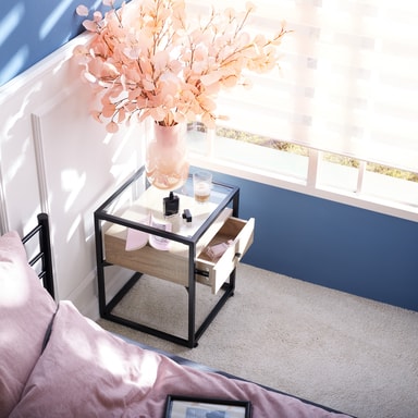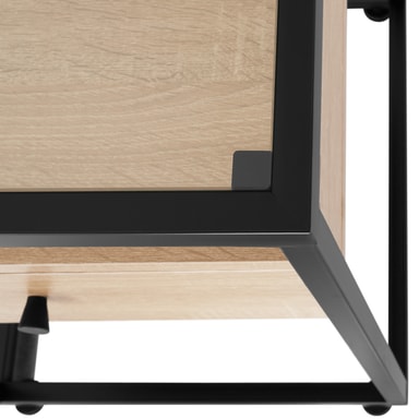 Det minimalistiska sängbord Preston från tectake skapar en mysig atmosfär med grov fabrikscharm i ditt sovrum eller vardagsrum. Varmt trä, svalt stål och filigranglas bildar tillsammans en smakfull helhetsbild, som får sin fina touch från den naturligt imiterade ådring. De lättskötta möblerna med sina två hyllplan och lådan ger praktiskt utrymme för inredning och förvaring. Knappast synliga och ändå väsentliga är de fyra skruvfötterna, som ser till att det charmiga sidobord alltid är i perfekt balans.