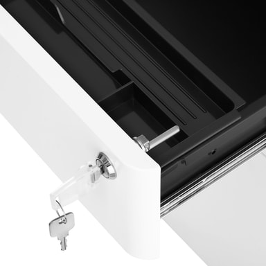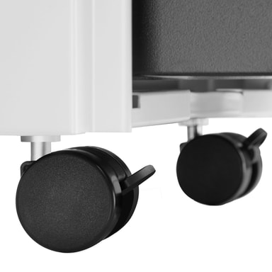 Arkivskåpet Parvus erbjuder gott om plats för dokument i A4-format och har dessutom en praktisk hängmappsfunktion. Den avtagbara insatsen för skrivredskap hjälper till att hålla pennor och annat kontorsmaterial prydligt förvarat. De helt utdragbara lådorna ger snabb åtkomst till dina dokument, och med det centrala cylindarlåset, som levereras med 2 nycklar, kan du vara säker på att dina känsliga handlingar förvaras tryggt. De fullt roterbara hjulen, varav 2 är låsbara, ger flexibilitet och gör det enkelt att flytta skåpet där det behövs – perfekt för dynamiska arbetsmiljöer.
