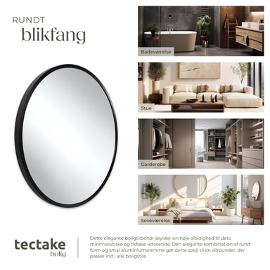 Den runda väggspegeln Fiona från tectake är inte bara en funktionell inredningsdetalj utan också ett stilfullt inslag som ger ditt hem mer ljus och djup. Med sin minimalistiska design blir spegeln ett elegant blickfång som är ett perfekt tillskott till alla inredningsstilar. Oavsett om den placeras i sovrummet, vardagsrummet, badrummet eller hallen tillför spegeln en sofistikerad touch till varje rum.