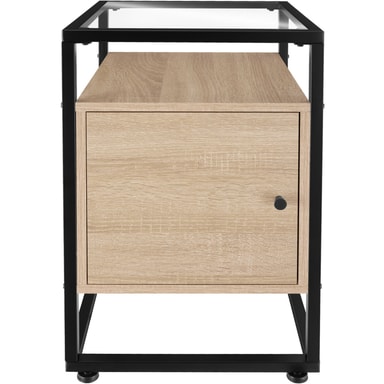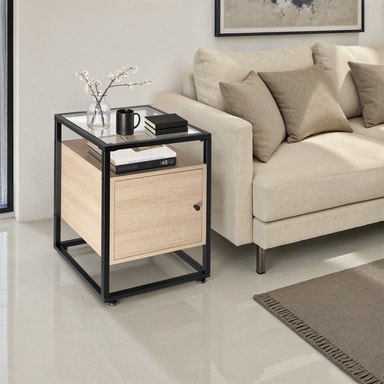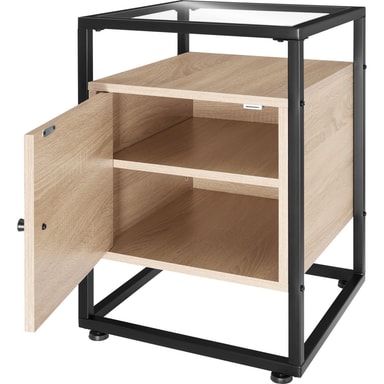 Det fyrkantiga sängbord Dudley från tectake kombinerar trä, stål och glas till en elegant enhet med trendig industriell chic. Sängbordets slående men medvetet reducerade design skapar lugn och harmoni och gör möbeln perfekt för en bekväm tillflyktsort. Det övre och nedre förvaringsutrymmet samt skåpets delade insida står för praktisk användning av det lättskötta sidobordet. Medan den pulverlackerade metallramen säkerställer god stabilitet, säkerställer de golvskyddande skruvfötterna perfekt balans - en harmonisk syn: Dudley-sängbordet från tectake med sin minimalistiska design.