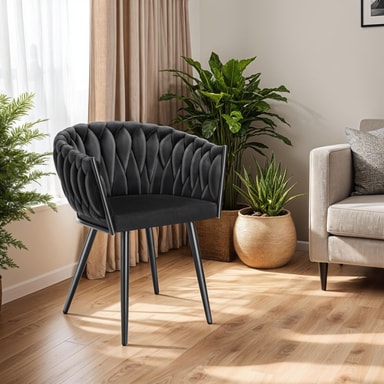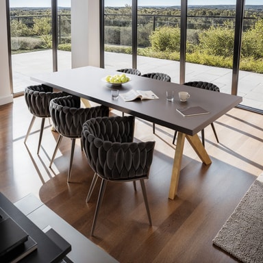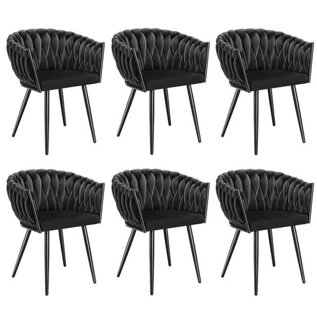 Förvandla ditt hem med de stiliga och bekväma matstolarna Astano från tectake. Matstolarna erbjuder både exceptionell stil och komfort, vilket gör dem till ett perfekt val för varje modernt hem. Stolarnas eleganta knutdesign blir ett stiligt blickfång medan den stora sitsen med ett genomgående arm- och ryggstöd, tillsammans med den mjuka vadderingen och lyxiga sammetstyget, ger en oöverträffad sittkomfort – perfekt för långa middagar runt matbordet.