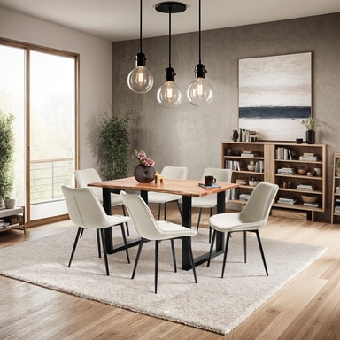 Med sina stående ben i stål och eleganta överdrag i en sofistikerad sammetslook, utstrålar de 6 dekorativa Monroe-stolarna från tectake både komfort och stil – en fröjd för ögat redan vid första anblicken. Dessutom har detta set med 6 stolar mycket mer att erbjuda såsom sittdynans ergonomiska design och den bekväma klädseln. Tack vare den snygga, diskreta designen kan dessa dekorativa möbler också enkelt integreras i din befintliga inredning hemma. Utöver sitt snygga utseende, skyddar även stolarna ditt golv med golvskyddande plastkåpor på fötterna. Stolarna har vad som krävs vad gäller stabilitet, spänst och hållbarhet - allt som allt en riktigt flexibel grupp med stolar. Ge ditt hem en härlig inbjudande känsla med dessa mysiga och stabila stolar från tectake.