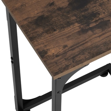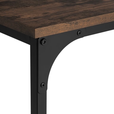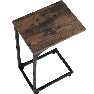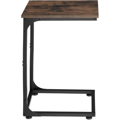Med sin minimalistiska men slående design inspirerar det lilla sidobord Erie från tectake alla fans av den trendiga industriella stilen. Sidbordets optiskt tilltalande spänningen är resultatet av kontrasten mellan varmt trä och kallt stål, vilket är typiskt för factory chic. Höjdpunkten med bordets trendiga hemaccessoaren är dess asymmetriska C-formade ram, vilket gör att den kan användas bekvämt från en fåtölj, soffa eller säng. Vid användning imponerar den linjära konstruktionen med god stabilitet, utmärkt stabilitet och en skyddande melaminbeläggning på den solida bordsskivan - flexibel och mångsidig: det smakfulla Erie sidobordet från tectake.