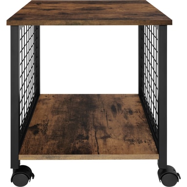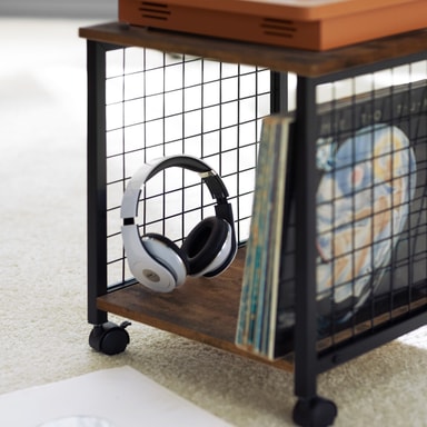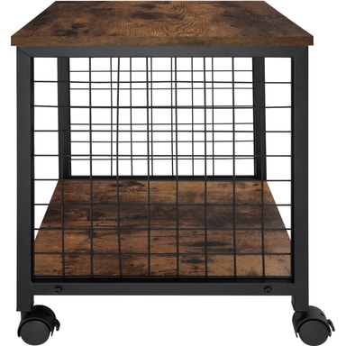• Mobilt sidobord med två hyllplan i en distinkt industriell stil