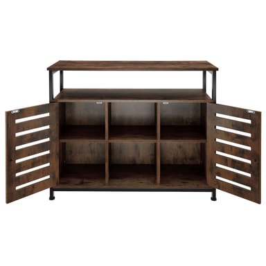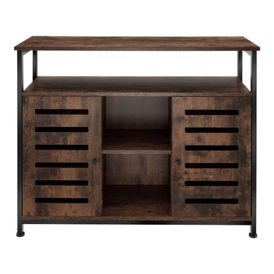 Om du uppskattar attraktiva kontraster och en tydlig design är det mångsidiga Warrington-sidobordet från tectake ett måste för ditt hem. Den svarta stålramen, den naturtrogna träimitationen och de moderna linjerna skapar en imponerande estetik med en iögonfallande industriell stil. Skåpet har 2 hyllor, 2 skåpsfack och en öppen mittsektion som erbjuder både en rymlig presentationsyta och gott om förvaringsutrymme. Den höga funktionaliteten är typisk för denna puristiska möbelstil, med lättstängda magnetdörrar, justerbara hyllplan och exakta justerbara skruvfötter.