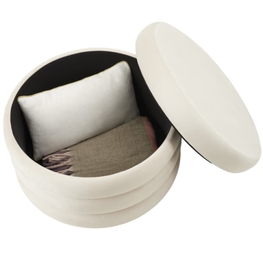 Med sin moderna design och mjuka sammetstyget passar sittpuffen perfekt in i varje rum, samtidigt som den ger möjlighet för en avslappnande paus. Pallens mjuka fyllning av högdensitetsskum ger en hög komfort, oavsett om du använder puffen som extra sittplats eller för att vila fötterna.