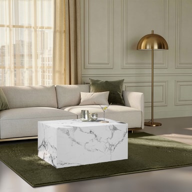 Trots sitt framträdande utseende smälter den helt förmonterade möbeln sömlöst in i redan befintliga inredningsstilar och fungerar både som ett funktionellt kaffebord, elegant avlastningsyta eller helt enkelt som en dekorativ accessoar.