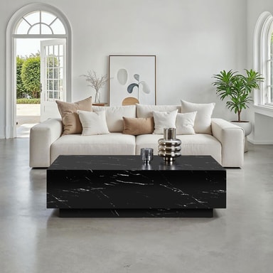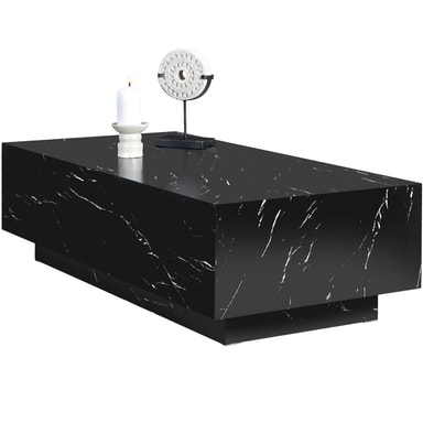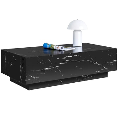 Upptäck det stilfulla soffbordet Lasley från tectake och ge ditt hem en uppgradering! Kombinationen av kantiga former och elegant marmorlook ger det en enastående närvaro som omedelbart fångar ögat i varje rum.