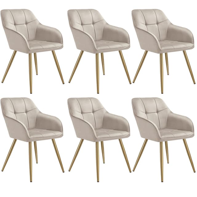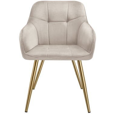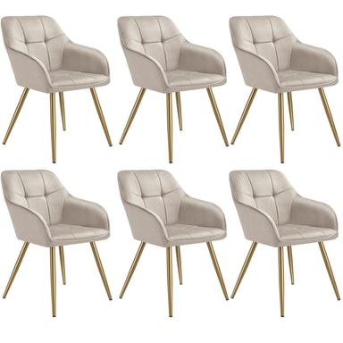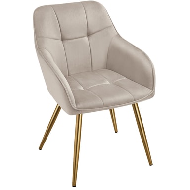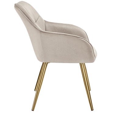 Stolen Marilyn från tectake förenar exklusiv design med högsta komfort. Stolen har ett ädelt sammetstyget och ett diskret quiltat mönster som ger en lyxig känsla och gör den till ett utmärkt blickfång i varje matsal eller vardagsrum