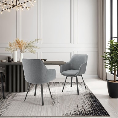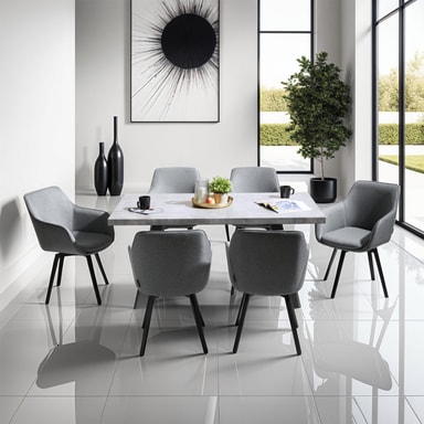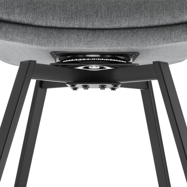 Förutom sin moderna estetik imponerar den roterbara fåtöljen med sin stabilitet. De slanka, pulverlackerade stålbenen ger en solid bas och garanterar stabilitet. De halkfria plastkåporna skyddar golvet och ger stabilitet på alla typer av underlag.