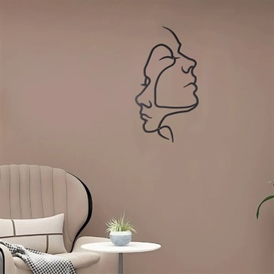 Stilren väggdekoration i metall med abstrakt ansiktsdesign