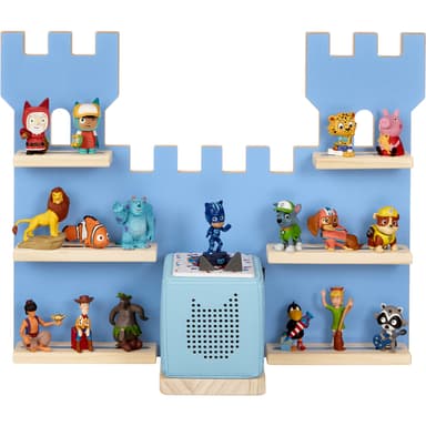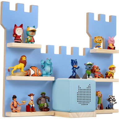 Vägghyllan MyLittleStory Fortress från tectake skapar en riddarlik atmosfär i varje barnrum. Den erbjuder inte bara tillräckligt med plats för upp till 16 Tonie-figurer, utan imponerar också med sin unika borgdesign som inbjuder till fantasifull lek. En höjdpunkt är det praktiska podiet för Tonieboxen, som har en exakt utskärning för laddningsstationen.
