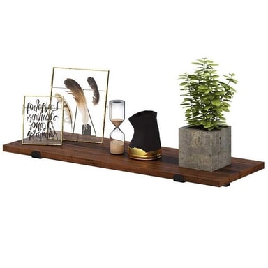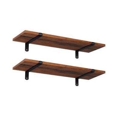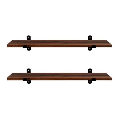 Specifikation - Mått per hylla: 60 x 20 x 7 cm (L x D x H) - Material: MDF (E1-klass), järn - Antal hyllor: 2 - Färg: Rustik brun med svarta beslag - Maxbelastning per hylla: 15 kg - Monteringsmetod: Väggmontering - Stil: Retro/vintage - Form: Rektangulär