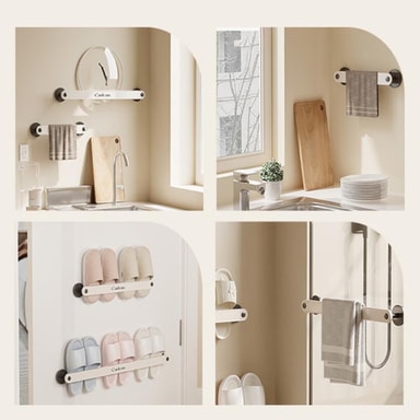 Mångsidig multifunktionell användning: Detta ställ är inte begränsat till bara handdukar och tofflor det kan också användas som ett lockställ för kastruller, disktrasa eller till och med ett litet badhandduksställ. Dess mångsidiga design gör den lämplig för olika rum i ditt hem, inklusive kök, badrum och tvättstuga. Maximera ditt förvaringsutrymme och håll dina väsentligheter organiserade med detta multifunktionella ställ. Den eleganta och minimalistiska designen kompletterar alla inredningar och lägger till en touch av elegans till ditt hem. Oavsett om du behöver en bekväm plats att förvara dina lock till kastruller medan du lagar mat eller ett stilfullt sätt att visa upp dina badhanddukar, erbjuder detta ställ en praktisk och estetiskt tilltalande lösning. Dess anpassningsförmåga gör det till ett viktigt tillskott till alla hem.
