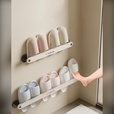 Hygienisk ventilationsdesign: Den 6 cm breddade designen säkerställer att handdukar och tofflor inte vidrör väggen, vilket främjar luftcirkulationen och hämmar mögeltillväxt. Denna innovativa design håller dina handdukar och tofflor torra och hygieniska, vilket förhindrar uppbyggnad av bakterier och obehagliga lukter. Perfekt för badrumsmiljöer, detta ställ ger en ren och organiserad förvaringslösning, vilket säkerställer att dina väsentligheter alltid är fräscha och redo att användas. Den upphöjda förvaringen möjliggör också enkel rengöring under, vilket upprätthåller en fläckfri badrumsmiljö. Denna funktion är särskilt fördelaktig i fuktiga klimat, där mögel och mögel är vanliga problem. Njut av ett hälsosammare och mer organiserat badrum med detta genomtänkt designade handduks- och toffelställ.