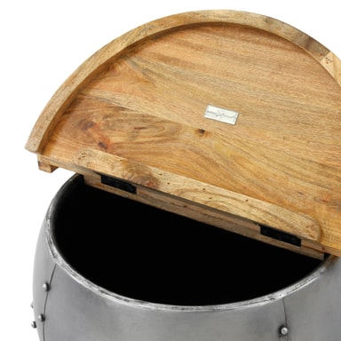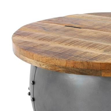 Varje bit är unik! Med det runda soffbordet från WOMO-DESIGN i industriellt utseende ger du dina rum ett helt nytt ansikte. Den handgjorda mangoträpanelen, gjord av grovsågade plankor, kommer till sin rätt på den svartlackade kroppen med ett hamrat utseende. En speciell höjdpunkt är det extra lagringsutrymmet i bordets botten, vilket är lätt att nå tack vare den hopfällbara bordsskivan. Industriell design och naturlighet kombineras perfekt här.
