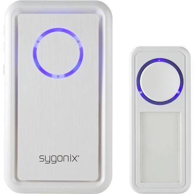 I fall som denna är man perfekt utrustad med den trådlösa dörrklockan från Sygonix, som är i diskret vitt och har ett blått LED-ljus på sändaren