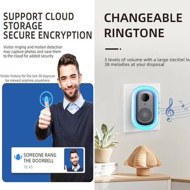 Förbättrad hemsäkerhet: Öka din hemsäkerhet med denna trådlösa smarta video dörrklocka. Med en högupplöst 1280x720 kamera ger denna dörrklocka kristallklara bilder, vilket gör att du kan övervaka din dörr med precision. Vidvinkelobjektivet fångar en bred vy och säkerställer omfattande täckning av din entré. Med mörkerseende och vitljuskompensation kan du bibehålla tydlig sikt även i svagt ljus. PIR-rörelsedetekteringsfunktionen varnar dig för all aktivitet och ger ett extra lager av säkerhet och trygghet. Denna smarta video dörrklocka är ett viktigt tillskott till alla moderna hemsäkerhetssystem och erbjuder pålitlig och bekväm övervakning.