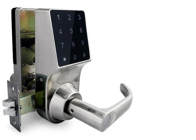 Smart dörrlås med touch: Vad är ett smart hem utan ett smart dörrlås? Med en intelligent låsanordning med handtag för installation/montering i dörr är du inte längre begränsad till endast nyckel för att låsa upp. Låset är utrustad med touchpanel för att knappa in koden.