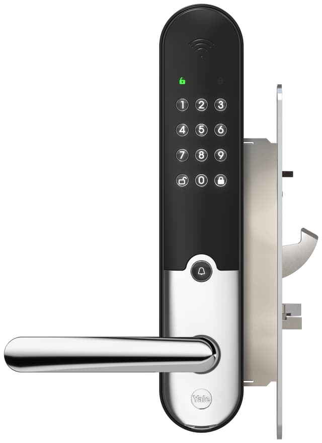 Med ett mycket säkrat Yale Doorman L3S Flex digitalt lås behöver du inte famla efter nycklarna längre. Det använder en knappsats och närhetssensor så att du kan låsa eller låsa upp dörren med en sifferkod, en nyckeltagg eller en kombination av båda. Tack vare dess standarddesign kan låset installeras på många standarddörrar genom att helt enkelt byta ut ditt nuvarande lås och handtag, och det kan användas på vänster- eller högerhängda dörrar. Det är nu kompatibelt med både Google Assistant och Amazon Alexa samt tjänster som IFTTT, Philips Hue och Airbnb.