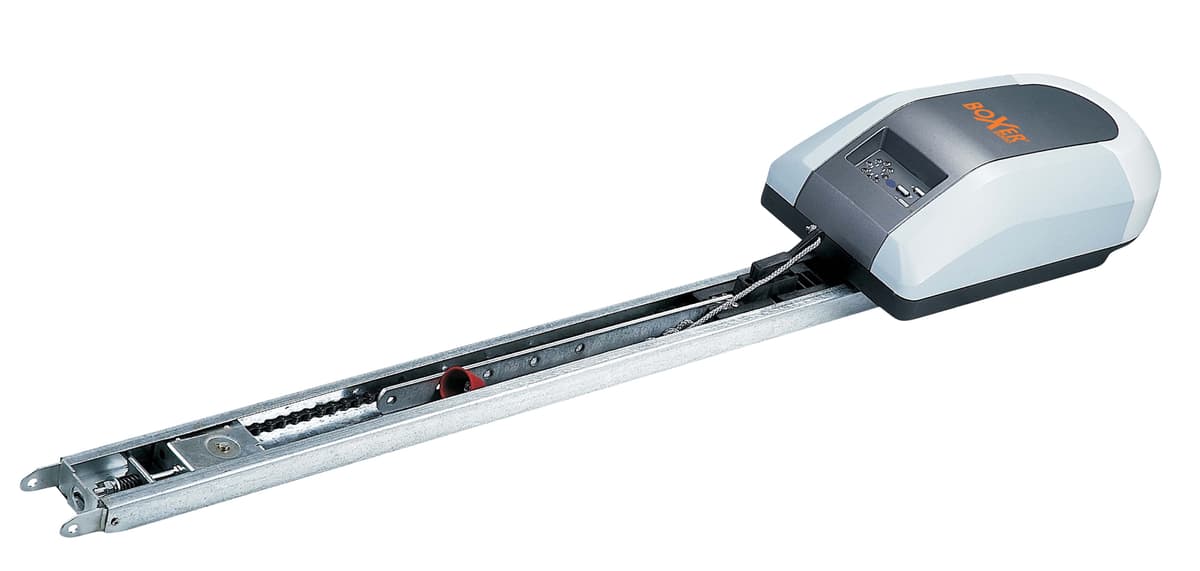 Garageportöppnare med inbyggd belysning som tänds och släcks automatiskt. Kraftig dragskena på 3 meter. Lyftkraft: 800 Newton för portar upp till 13,0 M2 (max 100 kg). Maximal porthöjd: 2,40 m Inkl. allt för montering och 2 st. fjärrkontrolle med batLäs mer om produkten