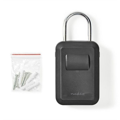 Nedis® nyckelskåp är ett enkelt och tillförlitligt sätt att ge andra tillgång till din fastighet. Du kan dessutom använda hänglåset för extra säker förvaring. Med nyckeln som förvaras inuti skåpet kan olika människor öppna porten eller dörren utan att du behöver extranycklar eller måste lämna nyckeln under dörrmattan – perfekt för egenincheckning. Vid behov kan du ändra den 4-siffriga koden till 9 999 unika kombinationer och slippa oroa dig över att koden kommer på villovägar. Sätt fast nyckelskåpet med bygeln i närheten av ingången eller montera det på väggen med medföljande fästmaterial. Dammskydd ger tillfredsställande skydd mot dåligt väder och smuts. Eftersom det är flyttbart kan nyckelskåpet användas på flera sätt, både inom- och utomhus • Aluminiumlegering – stark och hållbar • Låset har 4 hjul med 10 siffror att välja mellan, vilket möjliggör 9 999 unika kombinationer • Dammskydd av gummi – för utomhusbruk Paketet innehåller Nyckelskåp Monteringsmaterial Snabbstartsguide Inner Mått djup22 mm Inre Mått Bredd70 mm Innermått Längd95 mm Yttre Mått Bredd85 mm schackel Höjd60 mm schackel Clearance50 mm Yttre Dimensioner Längd185 mm Yttermått Djup42.5 mm