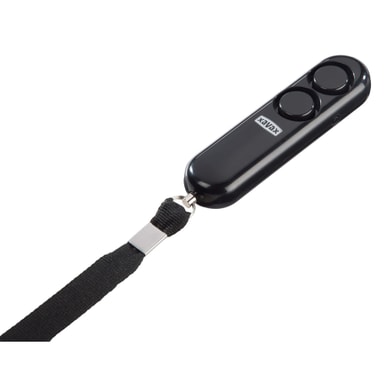 Personlarm midi2. Larm för personligt skydd med nyckelring. Kan även hängas runt halsen med bifogad rem. Aktivera och stoppa larmet genom att dra ut eller placera ett metallstift. Integrerad led-lampa kan också användas som ficklampagår du ofta för en kvällstur i staden, eller vill känna dig trygg i t ex ett underjordiskt garage? Detta personliga larm ger dig lugn, och kan visa sig vara ovärderligt. Aktivera larmet och skräm iväg angriparen med ett högt genomträngande ljud.