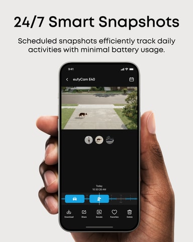 Eufy eufyCam E40 säkerhetskamera håller din egendom säker dygnet runt. Med 2K inspelningskvalitet, MaxColor Vision, PIR-driven rörelsedetektering och en inbyggd solpanel levereras denna kamera med HomeBase S380.Läs mer om produkten
