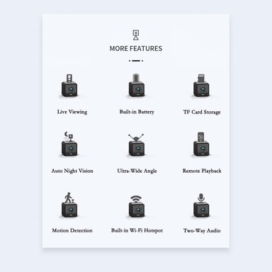 Bekväm molnlagring: Denna WiFi HD-kamera erbjuder bekväma molnlagringsalternativ, så att du säkert kan lagra dina videoinspelningar och komma åt dem var som helst. Med molnlagring behöver du inte oroa dig för att förlora dina bilder på grund av skadade eller stulna minneskort. Kameran stöder också lagring på minneskort, vilket ger ett backup-alternativ för dina inspelningar. Molnlagringstjänsten erbjuder en gratis 7-dagars provperiod, så att du kan uppleva fördelarna med molnlagring innan du förbinder dig till en prenumeration. Med molnlagring kan du enkelt dela dina videoinspelningar med familj och vänner, eller använda dem som bevis i händelse av en säkerhetsincident. Denna kamera ger en flexibel och bekväm lösning för att lagra och komma åt dina videoinspelningar.