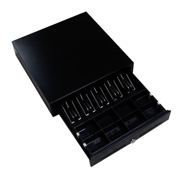 Enkel kassalåda i standardformat med 5 sedelfack och 8 myntfack samt 2 skåror för insättning av checkar/kuvert. Manuell och elektronisk öppning via standard rj11 telekontakt som oftast kopplas till kvittoskrivaren och öppnas då när kvittot skrivs ut. Perfekt för de nya svenska sedlarna. Stadiga och tillförlitlig pos-kassalåda nyckellås med tre lägen 2st nycklar medföljer kan öppnas både manuellt med nyckel, eller elektroniskt från vanliga kvittoskrivare eller kassaregister med ett 24 v rj11-uttag. Nyckellås med tre lägen som öppnar lådan extern drivkrets med omkopplare som öppnar lådan via mjukvaran fyra sedelfack/åtta myntfack och ett främre kupongfack löstagbar kassalåda med låsbara alternativ från tillverkaren yttermått: 410*420*100mm (bredd x djup x höjd) låda i metall/plast 3 sedelfack 8 myntfack vikt 5,7kg