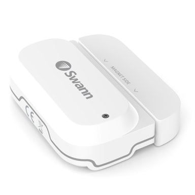 Fönster/dörrsensor SWIFI-WDOOR Fäst denna sensor på en fönster- eller dörrkarm för att få meddelande när det sker en störning. När den magnetiska länken mellan sensorn och mottagaren bryts skickas en varning till dig. Använd den för att övervaka dörrar som kräver godkänd passage, på ett fönster utanför din synlinje för att upptäcka intrång och mycket mer! Fönster-/dörrsensorn kan integreras i ett komplett säkerhetssystem som hanteras i Swann Security-appen för att ta emot varningar. Den kan även anslutas till inomhus-sirenen för en hörbar och synlig larm som är ett kraftfullt avskräckande medel mot inkräktare. •Installera var som helst - batteridriven, kompakt och väderbeständig •Enkel installation - enkel anslutning till Wi-Fi-nätverket utan någon hubb •Snabb respons - push-meddelanden på din telefon på mindre än 8 sekunder från händelsen •Lång batteritid - använder lättillgängliga AAA-batterier •Smart - sensorerna kan även skicka varningar till Google- och Alexa-enheter