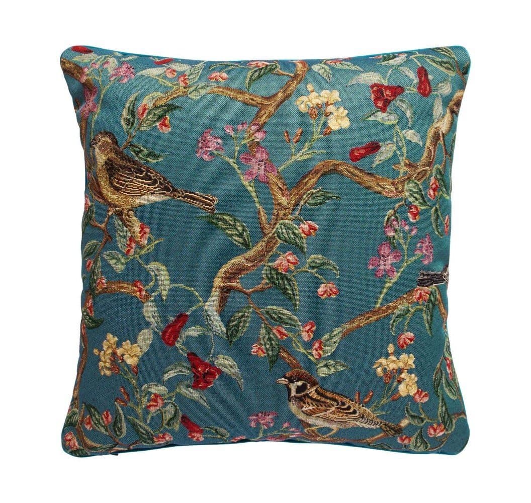 Kudde HOLLY 45x45cm, fåglar, kudden har dragkedja, den har rullad kant, vävtapet, 50% polyester, 50% bomull, tyg 488. SKÖTSEL: kudden kan tvättas i 30 grader i tvättmaskinen.