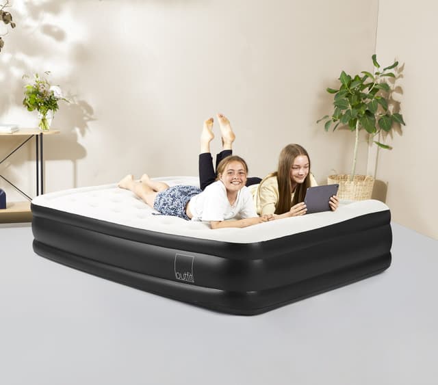 Luftmadrass i storlek motsvarande dubbelsäng med inbyggd elektrisk pump.