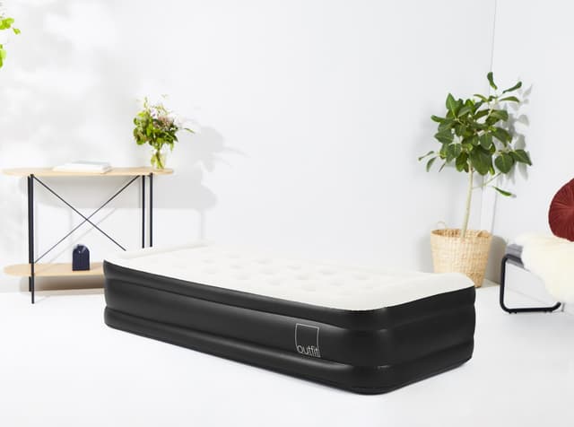 Luftmadrass i storlek motsvarande enkelsäng med inbyggd elektrisk pump. Den uppblåsbara madrassen är perfekt för en person som gästsäng i huset eller som en luftmadrass på camping.