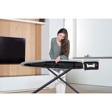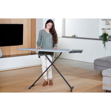 Strykbräda med 100% bomullsöverdrag och strykjärnsstöd även lämplig för strykjärn med ångstation. Med 3 justerbara höjdlägen upp till 93 cm och en strykyta på 40 x 124 cm, mer än tillräckligt för att stryka alla typer av kläder och lakan bekvämt.
