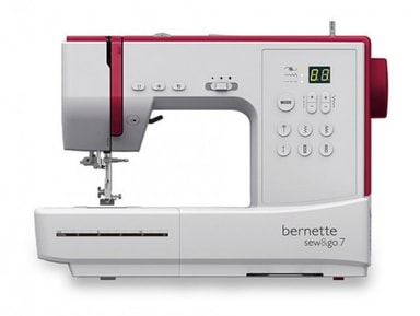 Bernina Bernette Sew&Go 7 Bernette Sew&Gomodellene har mange Funksjoner med moderne design, til en gunstig pris.Funksjoner SEW&GO 7 er en elektronisk maskin, med i alt 80 sømmer, blandt annet overlocksømmer, quiltesømmer, automatisk 1trinns knapphull i tillegg til flere pyntesømmer. Den har justerbar trådspenning, og kan sy med maks stinglengde på 4,5mm, og stingbredde på 7mm. Maskinen har og innebygd automatisk nålitreder, og justerbare nålposisjoner. Trygt kjøp fra symaskiner.no 80 innebygde sømmer 1trinns knapphull Automatisk nålitreder Justerbart trykkfot trykk Elektronisk trinnløs hastighettsjustering Valgfri nålstopp (oppe/nede) passer tvillingnål Snapon trykkføtter Friarm TrådknivLED lys Vekt 7kg Utstyr Følger med synåler, diverse trykkføtter, undertrådspoler, liten skrutrekker, sømguide/linjar, norsk instruksjonsbok m.m