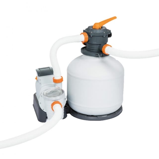 Den perfekta pumpen som kommer hålla sommaraktiviteten vid liv under hela sommaren. Med sitt efffektiva och lätthanterliga sandfilter rengörs poolvattnet mycket väl. Vattnet pumpas genom sanden där partiklar och smuts fångas upp. För att sedan pumpas tillbaka rent och klart. Pumpen är utrustad med en inbyggd timer som du kan ställa in och bestämma när du vill att din pump ska arbeta. Med timern sparar du på el och på pumpens livslängd. En ny funktion är ChemConnect™ Dispenser vilket bibehåller och förser poolen med friskt och klart poolvatten. Dispensern ser till att poolvattnent har en stabil och rätt nivå av klor som behövs för kemikaliska balansen. Denna pump är kompatibel med flera av Bestways pooler.