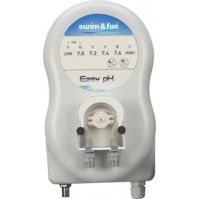 Easy pH är en kompakt automatisk regulator med inbyggd doseringspump. Regulatorn är ansluten till en sond som är monterad i cirkulationssystemet. Sonden mäter det aktuella pH-värdet i vattnet. Easy pH-regulatorn ansluts med slang till en behållare med ett pH-balanserande medel.