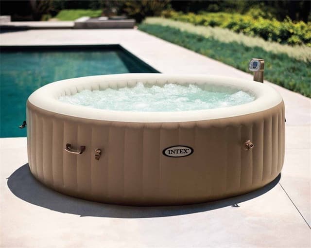 Njut av denna runda bubbel pool med plats för 6 personer.Perfekt uppblåsbart spabad för festen eller om ni vill njuta av en hektisk dag efter jobbet.Den klarar upp till 40 graders värme och med den enkla displayen så kan ni
