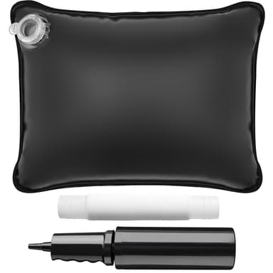 Förutom en praktisk bärväska och en smidig pump ingår en bekväm kudde i leveransen. Denna kan enkelt fyllas med vatten och lovar en mycket behaglig komfort.