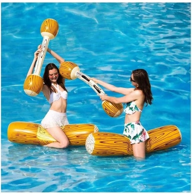 Visa vem som verkligen bestämmer genom att utmana kompisen på en gladiatorfight! Blås upp stockarna och klubborna, sen är det bara att hoppa upp och kampen kan börja! Första personen som puttas ner från sin stock och hamnar i vattnet förlorar! Varför inte köpa två set och utmanna ännu fler vänner där sisten som fortfrande flyter - vinner! Perfekt till poolen, sjön eller ute på havet! Bjud in och utmana kompisarna på födelsedagskalaset, bjud in fotbollslaget eller varför inte en gång för alla visa vem som egentligen bestämmer i familjen?