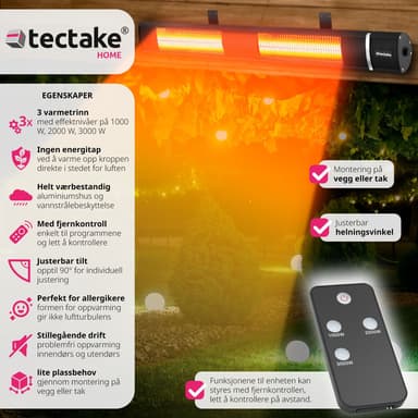 När temperaturen sjunker är infravärmaren Solaris Horizon från tectake precis det du behöver för att hålla din utomhusyta mysig och varm. Denna högkvalitativa värmare är inte bara ett mästerverk av effektivitet, utan också en riktig blickfångare för varje trädgård eller terrass.
