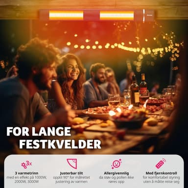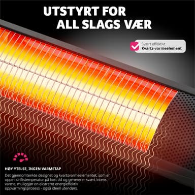 Tack vare den moderna infraröda-tekniken erbjuder Solaris Horizon en direkt och behaglig värme som är omedelbart märkbar. Värmaren arbetar med en effekt på upp till 3000 watt och säkerställer att du och dina gäster känner er varma och bekväma även på svalare kvällar. En annan fördel med denna teknik är energieffektiviteten, som inte bara skyddar miljön utan också din elräkning.