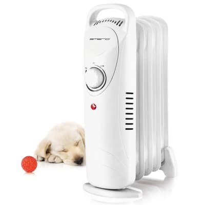 Denna kompakta och oljefyllda elradiator är utrustad med reglerbar termostat, belyst strömbrytare och stabila fötter.