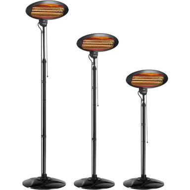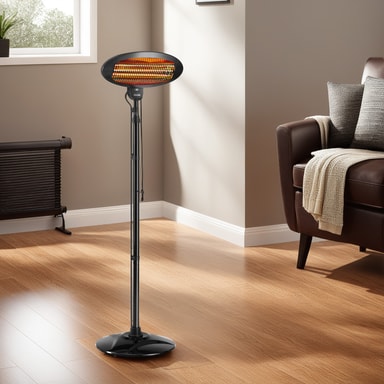 Oavsett om den är monterad på väggen eller på det robusta stativet anpassar sig denna infravärmare flexibelt efter dina behov och rummets förhållanden.