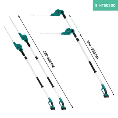 Trimma höga häckar utan stege. VONROC teleskopisk häcksax 20V med 2.0Ah batteri och laddare gör det enkelt att nå upp till 3 meters höjd. Med 40 cm blad och 6 justerbara vinklar klipper du häcken effektivt, säkert och bekvämt – direkt från marken.