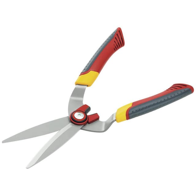 Wolf Garten HS-B HäcksaxRent formsnitt (t.ex. Buxträd) med smidiga kortblad · ergonomiskt tvåkomponentshandtag · inbyggd grenskärare · välvda, dubbelslipade, antiklibbehandlade klingor · fint justerbart lagerspel · stötdämpande buffertkuddar.